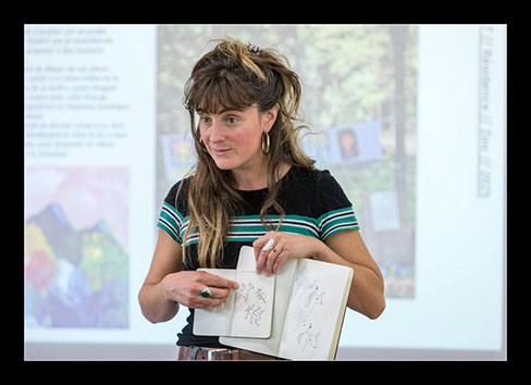 L’objectif de cette rencontre est une invitation à plonger dans l’univers de l’album en cours de création. L'illustratrice présentera le projet de la résidence et développera un petit atelier autour du thème de la forêt. Elle y présentera des recherches, des extraits visuels et sonores du projet de médiation « Bruisse Forêt ». Ce sera l’occasion de présenter le conte « Le grand chêne et la mémoire de la forêt », ainsi que des extraits des peintures qui sont réalisées au sein de cette sortie en forêt . Si le temps le permet, elle proposera un petit atelier de dessin afin de réfléchir ensemble aux deux notions visible/invisible dans le milieu sauvage.