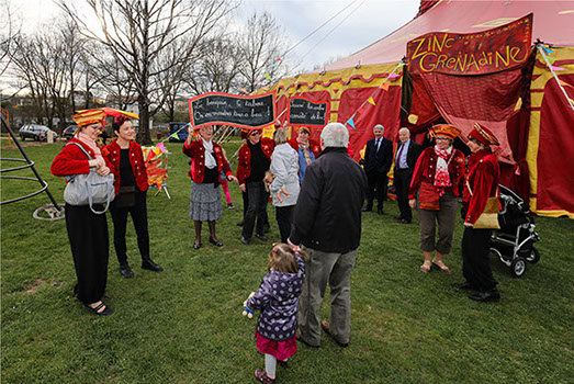 Fidèle à lui-même, Clair Arthur insuffle à la manifestation son univers fantaisiste et poétique. Pour lui, pas question d'investir une quelconque salle, le Zinc Grenadine ne peut camper que sous tente et les auteurs doivent être installés dans des canapés à hauteur d'enfants !
