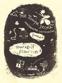 Sous un monticule de terre moelleuse, La vie taupe secrète invite à venir observer le quotidien d’une petite bête assoupie mais bien vivante… Une capsule naturaliste animée par deux marionnettes portées qui cohabitent avec malice dans une tanière sombre et apprennent petit à petit à construire un lien souterrain. Tendresse et humour «Tatiesque» s’immiscent entre les strates de la terre